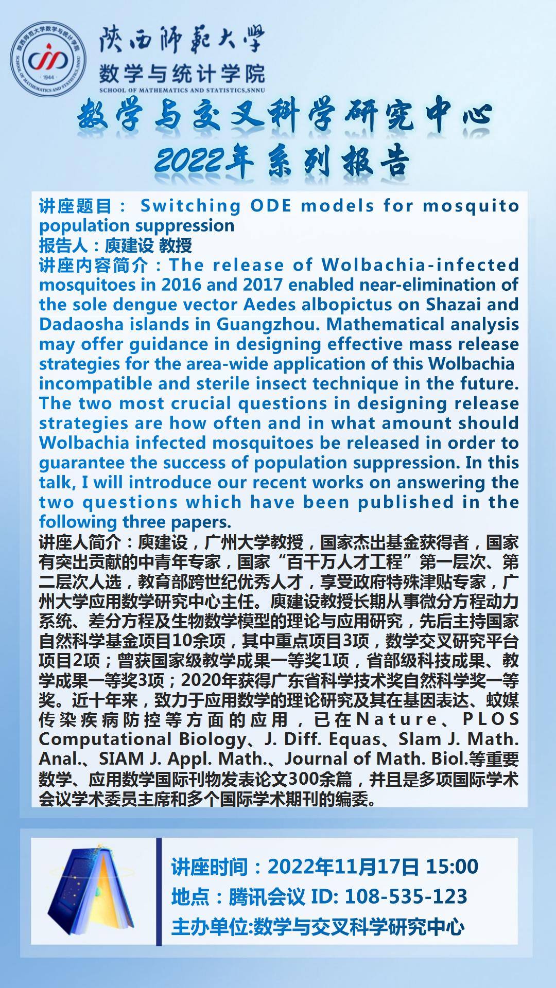 【学术活动月系列十三】Switching ODE models for mosquito population suppression