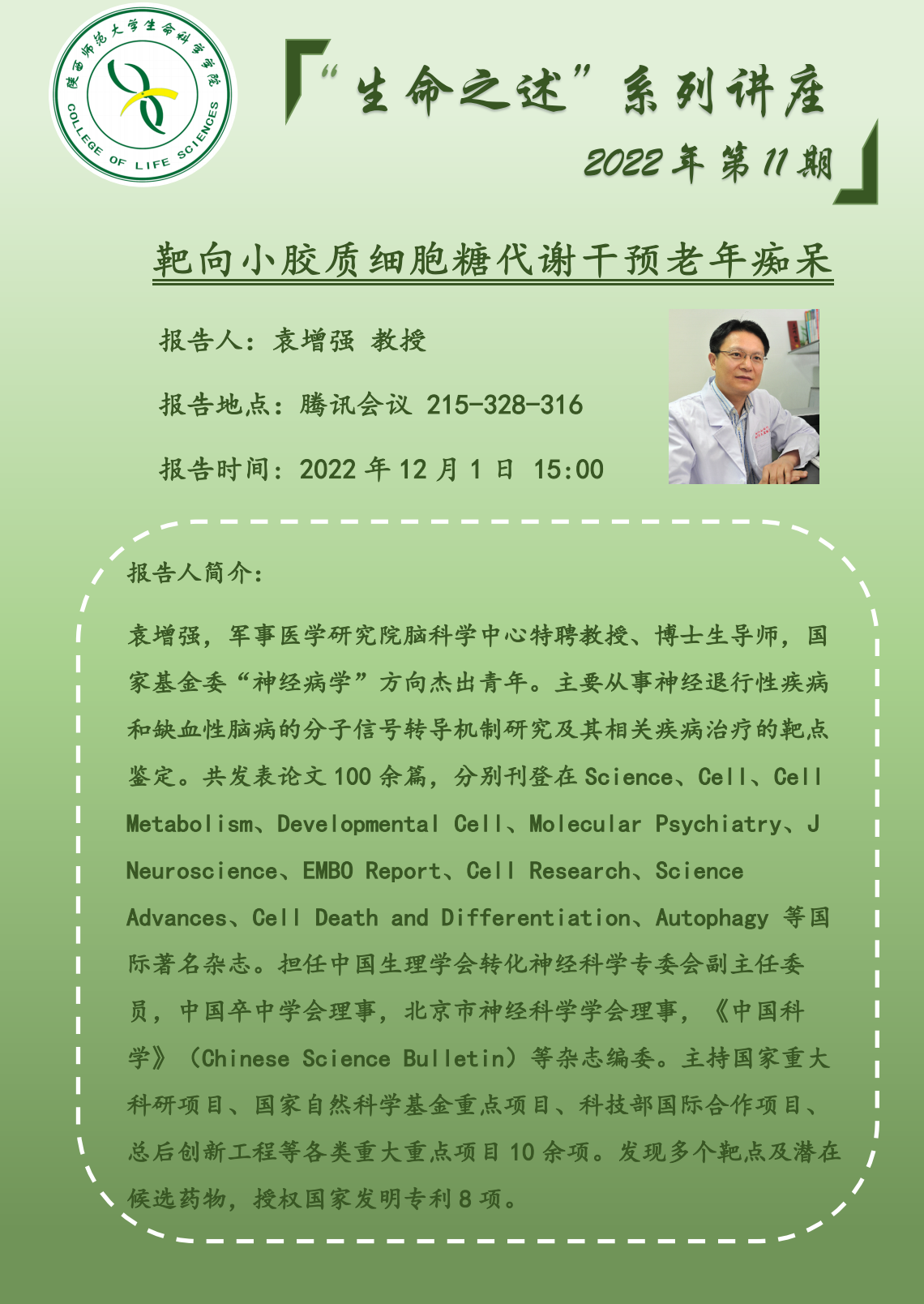 【学术活动月系列十九】靶向小胶质细胞糖代谢干预老年痴呆