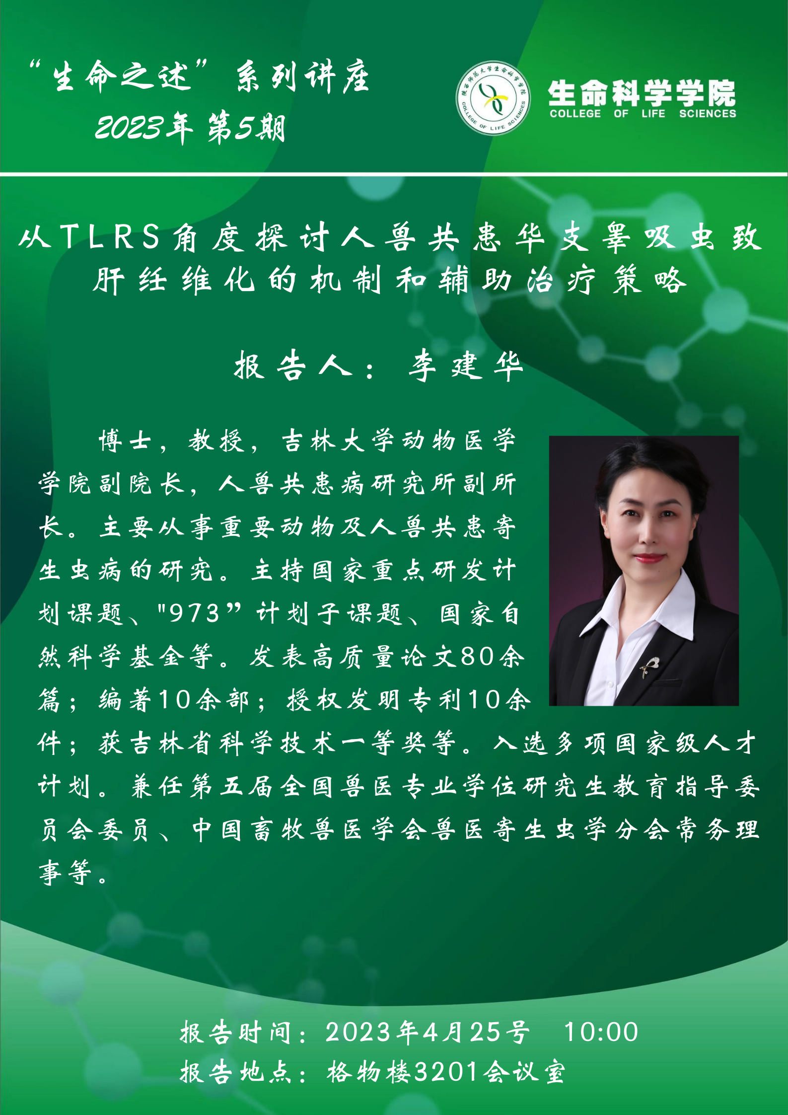 “生命之述”系列讲座--从TLRS角度探讨人兽共患华支睾吸虫致肝纴维化的机制和辅助治疗策略