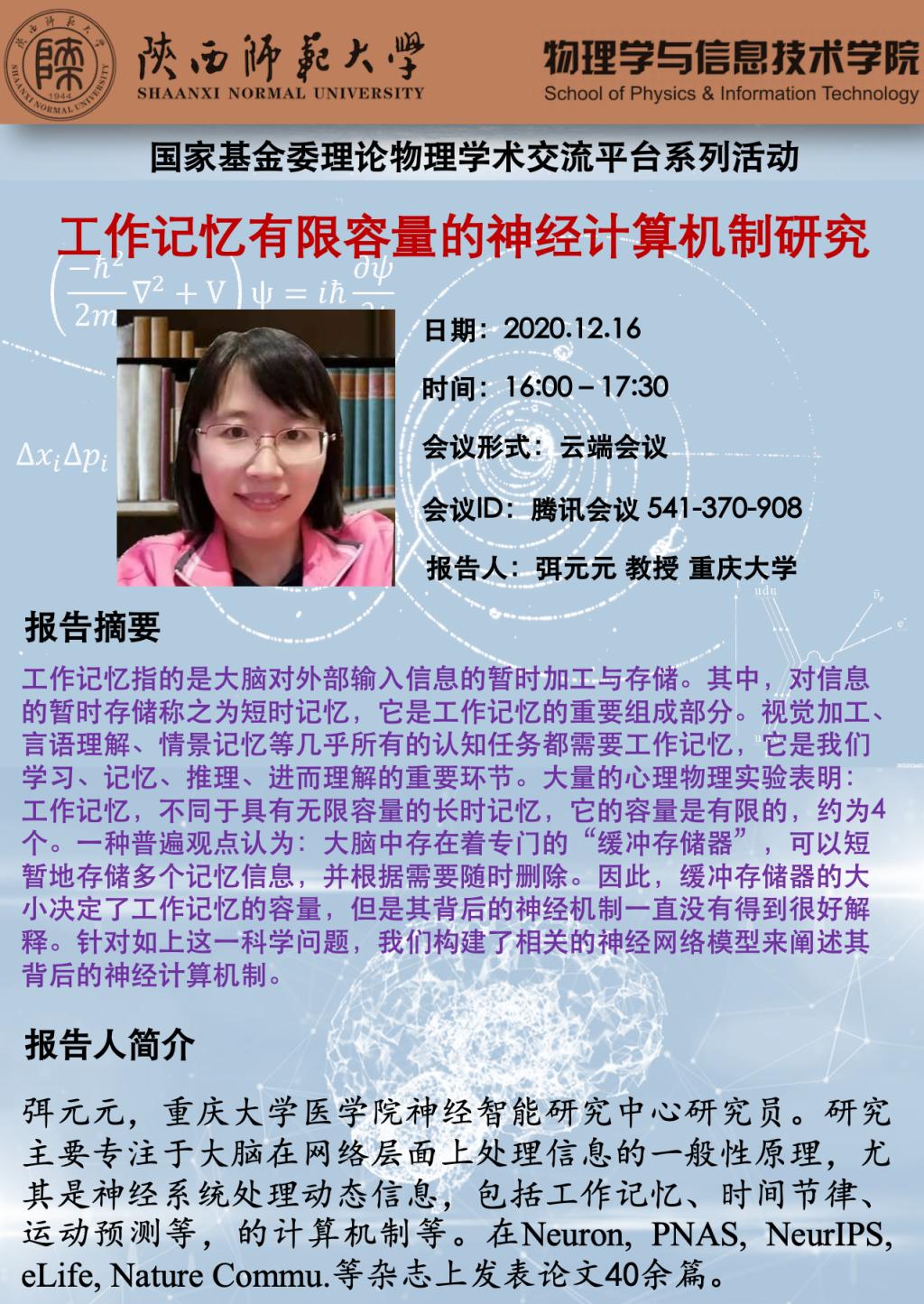 国家基金委理论物理学术交流平台系列活动——工作记忆有限容量的神经计算机制研究