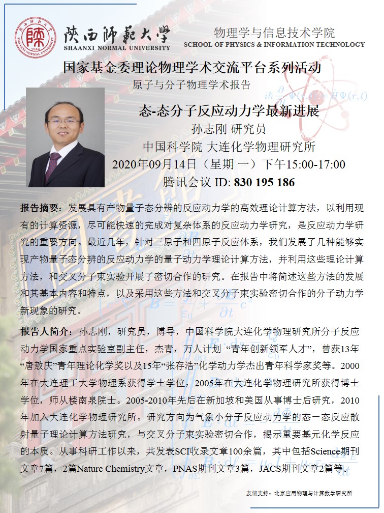 国家基金委理论物理学术交流平台系列活动通知:态-态分子反应动力学最新进展