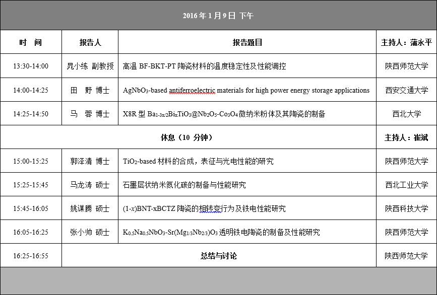 活动类别:第六届电介质材料物理研究生交流讨论会