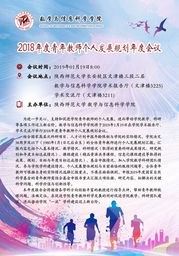 活动类别:数学与信息科学学院2018年度青年教师个人发展规划年度会议