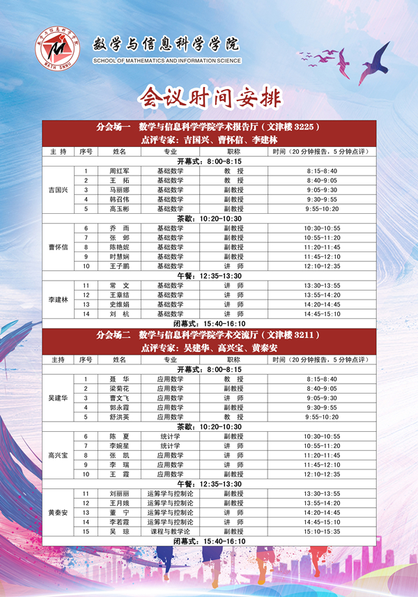 地点:长安校区 文津楼 数学与信息科学学院学术报告厅、学术交流厅