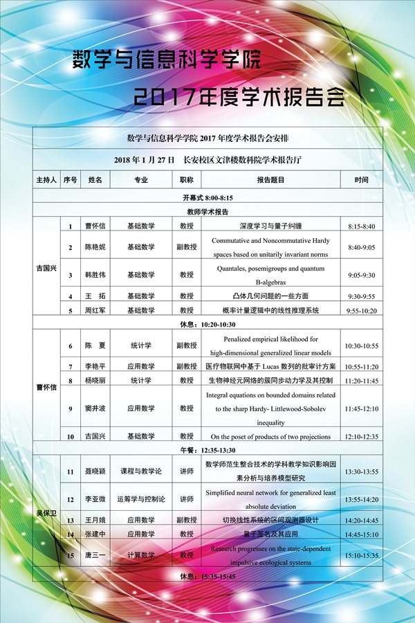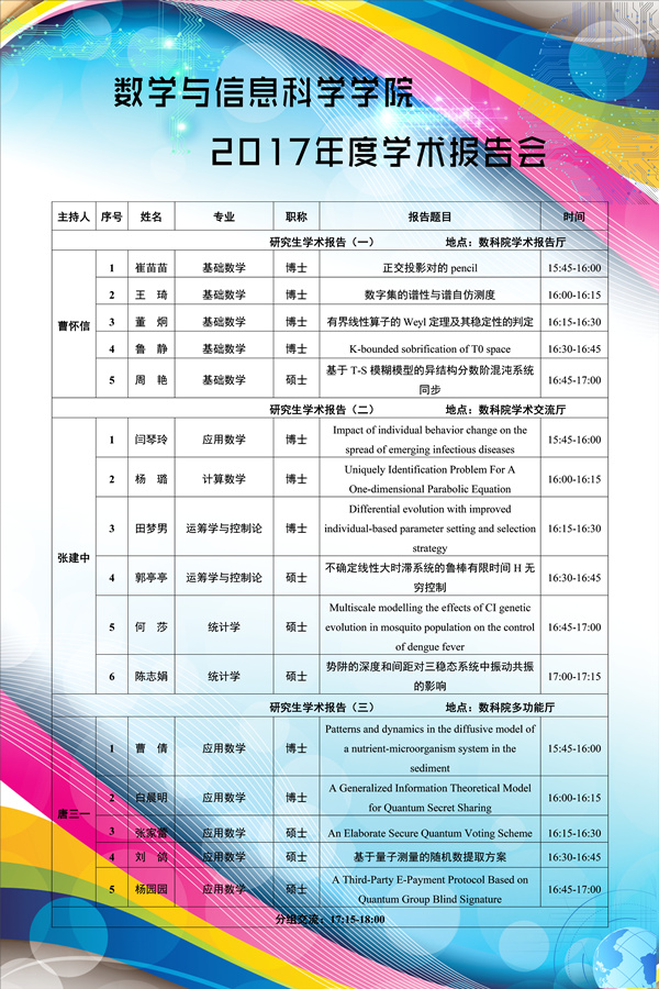 数学与信息科学学院2017年度学术报告会