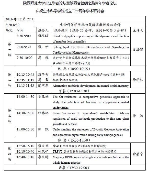 活动类别:beat365体育官方网站曲江学者论坛暨陕西省丝绸之路青年学者论坛/庆祝生命科学学院成立二十周年学术研讨会