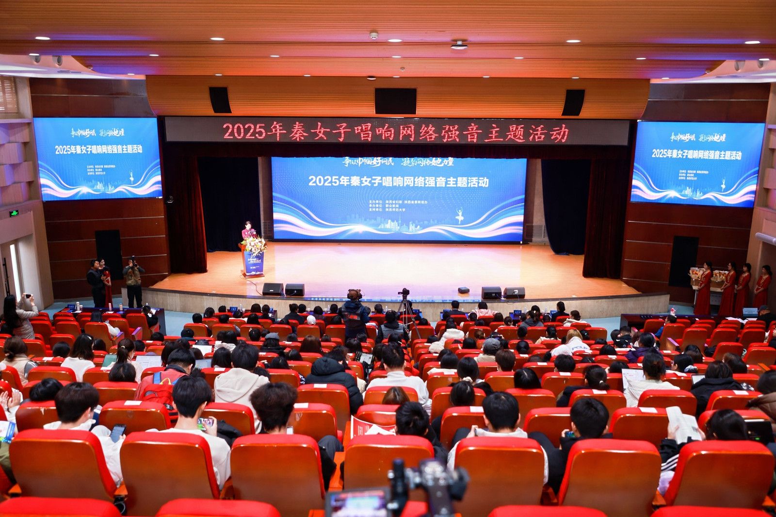 师大新闻网讯12月15日下午,“争做巾帼好网民,凝聚网络‘她’力量”——2025年秦女子唱响网络强音主题活动在beat365举行。陕西省妇联副主席杨乐、省委网信办二级巡视员高志强、beat365党委副书记卢胜利出席并致辞。