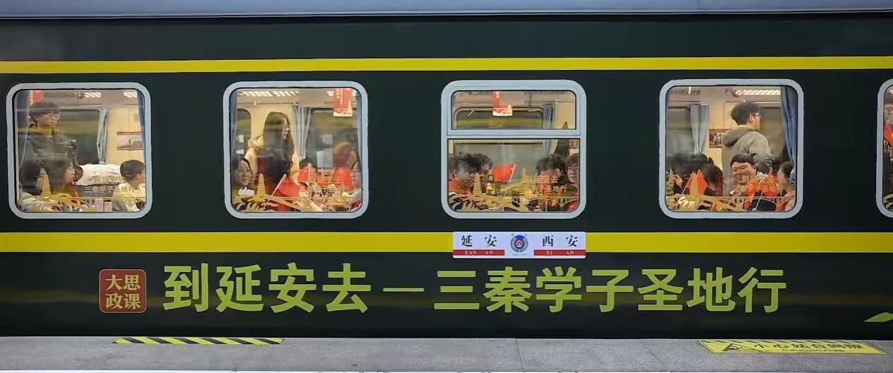 陕西教育新闻网·陕西教育客户端(记者 雷思佳)9月13日上午,西安火车站站台上红旗飘扬,首趟“到延安去·三秦学子圣地行”红色专列满载600名高校学子缓缓开动,驶向革命圣地延安。车窗上,宝塔山图案与“大思政课”标语交相辉映;车厢内,学生们眼中充满期待。一场以车厢为课堂、以圣地为教材的沉浸式红色之旅就此启程……
