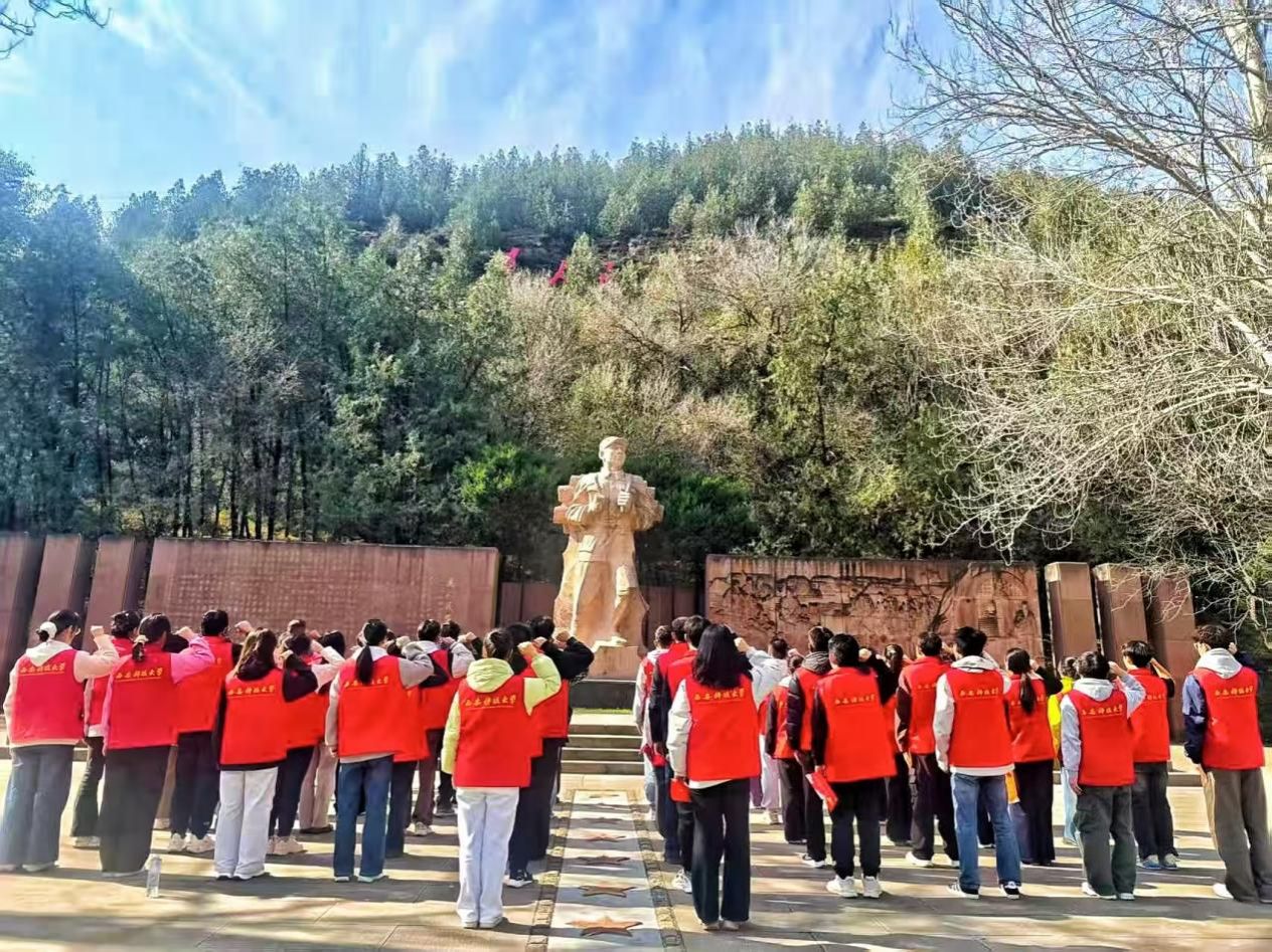 西安科技大学依托“红墨育人”理念,分两批组织团学骨干、“红言”宣讲团成员及优秀学生和少数民族学生代表开展红色研学。在延安革命纪念馆,师生们在一幅幅定格历史的照片、一件件承载岁月的实物前久久驻足,追溯那段风雨如磐而信念如山的峥嵘岁月;在张思德烈士雕塑前,大家集体诵读《为人民服务》全文,坚定为人民服务的初心使命;红色剧目《再回延安》将师生们带入真实而恢弘的历史场景,在沉浸式艺术体验中坚定理想抱负,让延安精神融入青年学子的情感认同与价值追求。