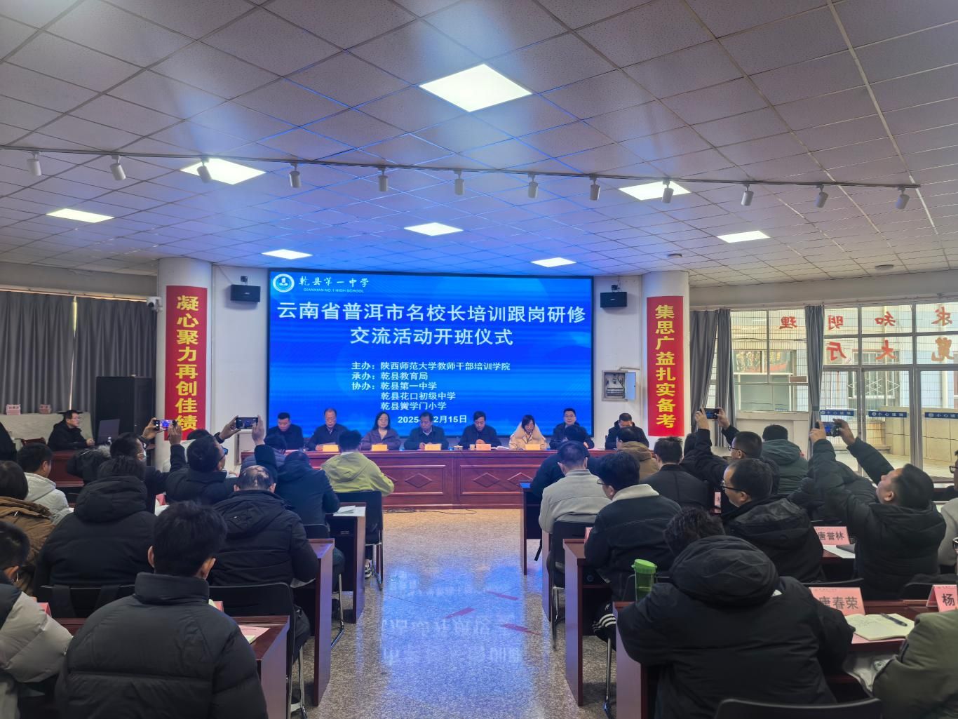 12月15日,跟岗研修阶段的启动仪式在乾县第一中学举办。仪式由乾县政府教育总督学董昱主持。乾县教育局党委书记、局长侯佼致欢迎辞,他希望以本次研修为契机,促进陕滇两地教育工作者深入交流、互学互鉴,共同为基础教育高质量发展贡献力量。beat365体育官方网站教师干部培训学院院长董喜林在讲话中强调,校长是学校发展的关键,跨省际的交流研修有助于拓展视野、激发思维,提升办学治校能力,期待参训校长们能在乾县收获真知、结下情谊。乾县第一中学校长张龙涛详细解读了跟岗研修方案,明确了研修目标、内容安排与学习要求,确保后续跟岗活动有序、有效开展。