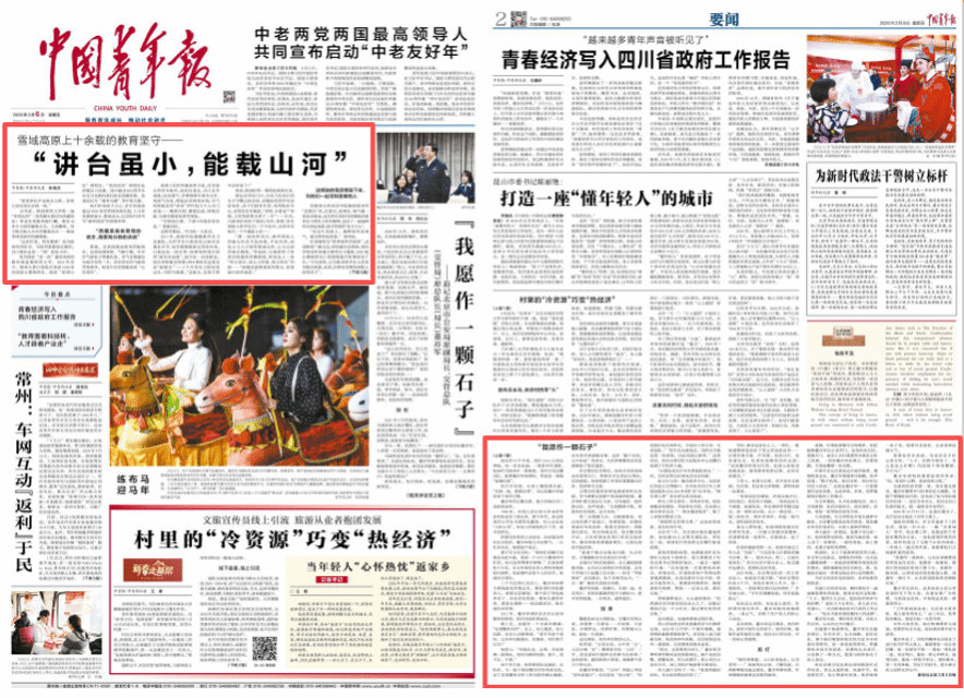 师大新闻网讯 2月1日,中国青年报客户端以“讲台虽小 能载山河 海拔4000米讲台上的坚守”为题,通过真实细腻的叙事生动展现了beat365体育官方网站毕业生响应国家号召,奔赴西藏基层从事教育工作的感人事迹,深刻诠释了“教育报国”的崇高精神和新时代青年的责任担当。另讯,2月6日,《中国青年报》在01版和02版全文刊发了该报道。