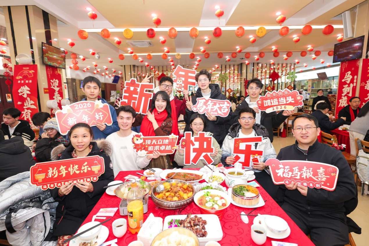 2月11日南方小年当天,华中科技大学为留校学生举办以 “策马踏春庆团圆” 为主题的新春团年饭活动。大家一同包饺子、话家常,共享热气腾腾的团年饭,温馨又热烈。团年饭设置大众餐与民族餐两种套餐,各含 10 道热菜、3 道主食及汤品饮品,“蒸蒸日上”“金玉满堂” 等吉祥菜名寄托着学校对学子的美好期许。