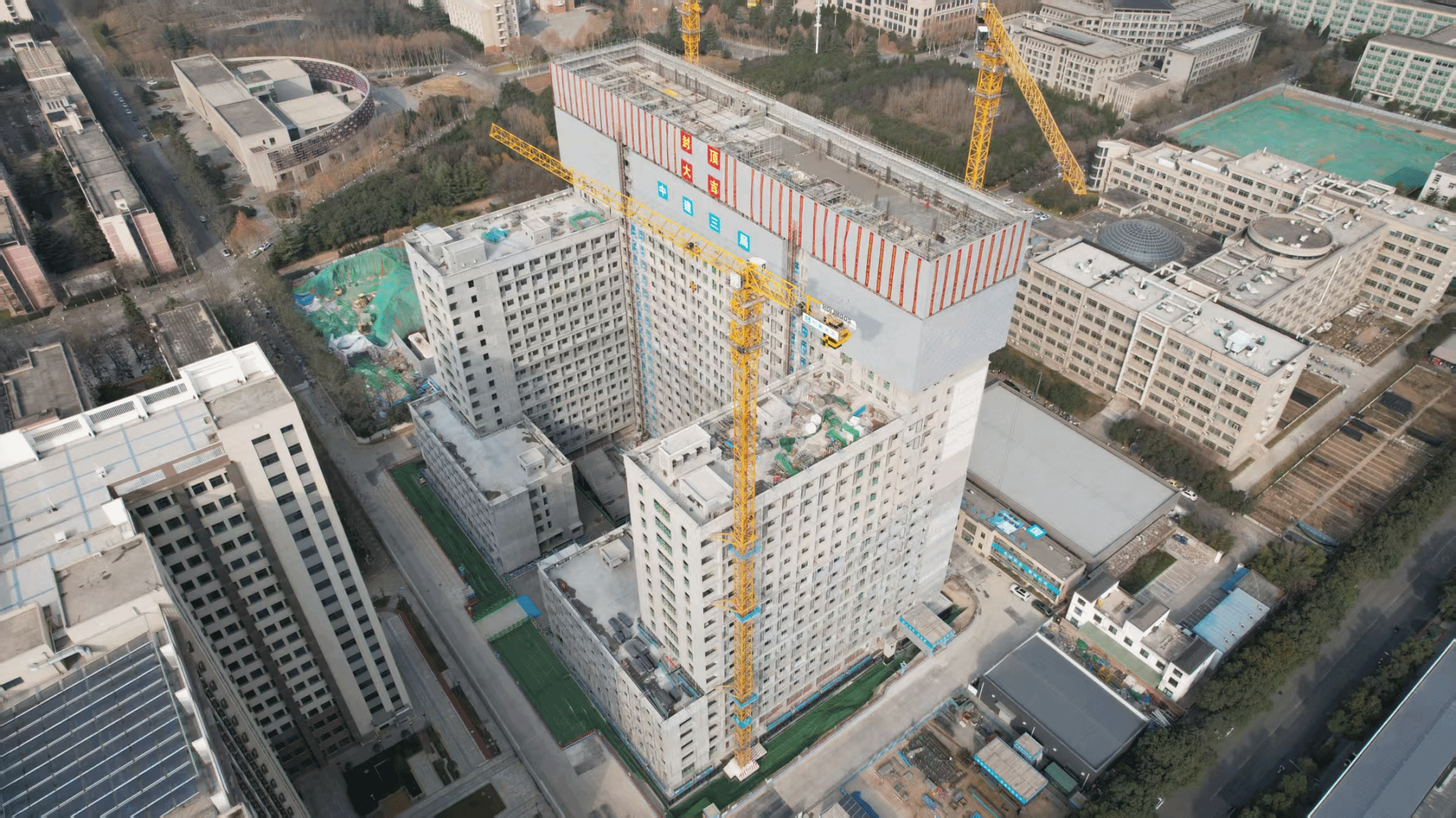 据悉,beat365学生公寓(二期)项目总建筑面积88528.78平方米,地上23层,地下2层,项目建成后可供 6400余名学生住宿。项目自2025年1月4日破土动工以来,全体参建人员不畏酷暑与严寒,克服严重连阴雨天气以及隔震支座、钢-混组合结构、装配式叠合板等诸多新技术难题,历经398天日夜奋战,顺利实现主体结构封顶,较计划工期提前50天,为项目后续建设奠定了坚实基础。