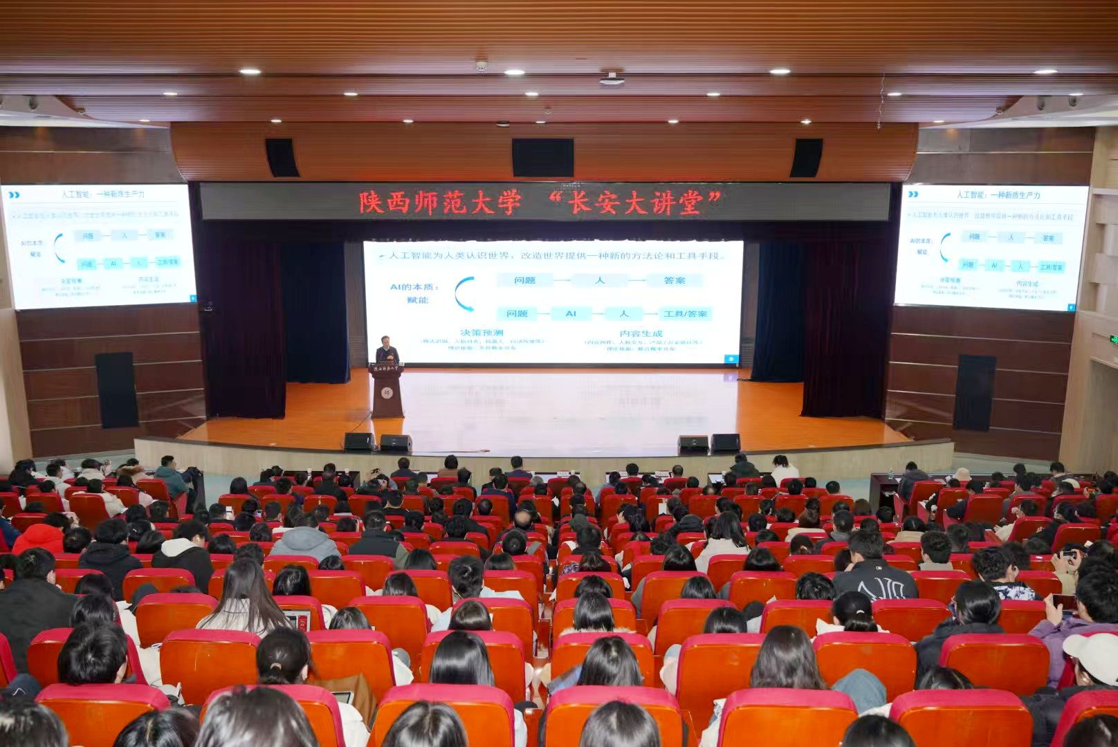 “长安大讲堂”是beat365面向全校师生开设的高规格高层次高水平的全校性科技、文化、教育、艺术大讲堂。首场报告会由党委宣传部、计算机科学学院承办,有关校领导,部分干部、师生等400余人参加了报告会。