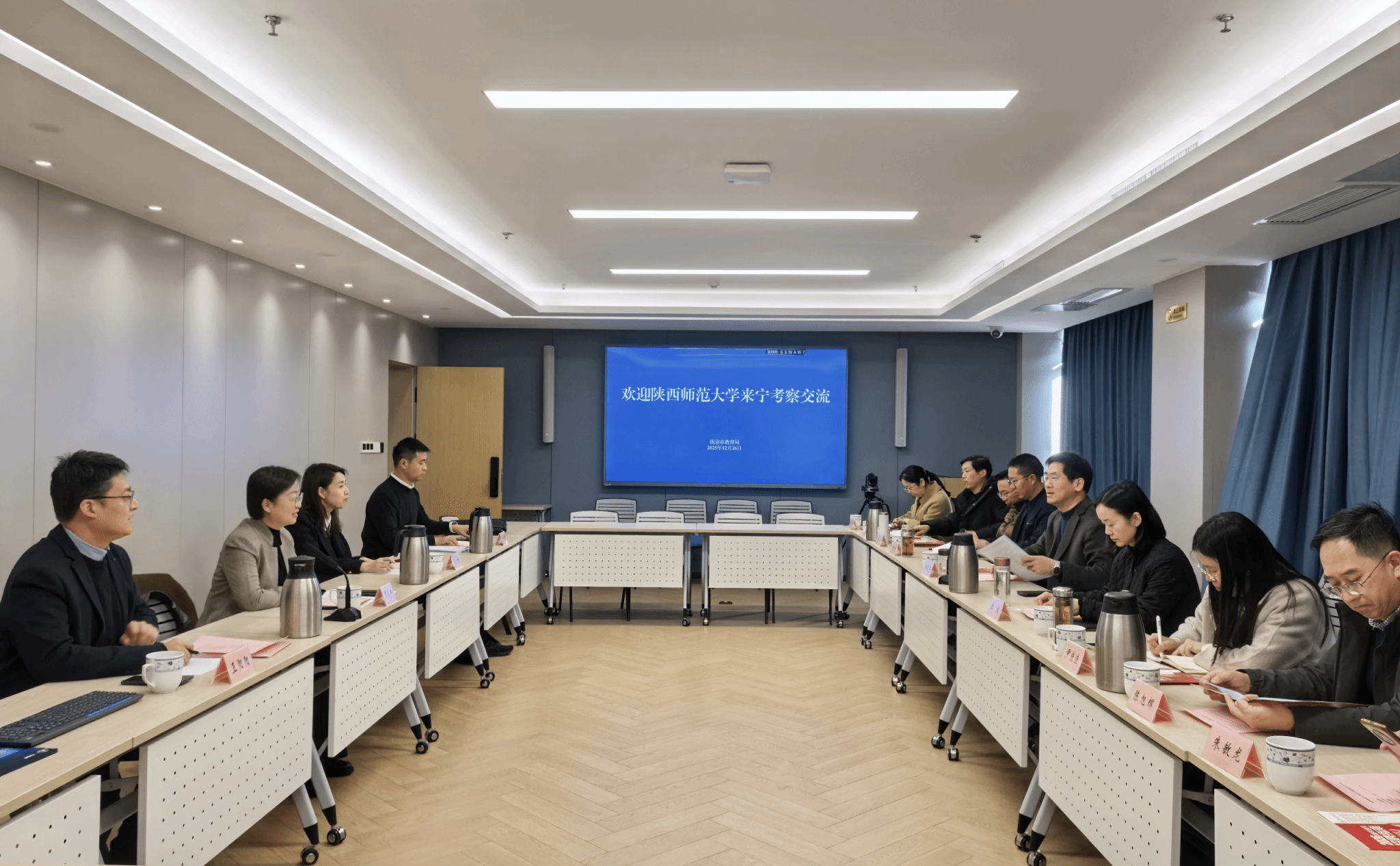 调研期间,调研组一行与江苏省人力资源和社会保障厅、南京市教育局相关负责人进行座谈。罗永辉向与会人员介绍了学校的办学特色、学科优势、人才培养成果,以及近年来学校在服务国家战略和地方经济社会发展方面取得的积极成效。罗永辉表示,学校将对标江苏社会经济发展核心需求,深化校企校地协同合作,为江苏企事业单位和基础教育一线输送高质量人才。江苏省人力资源和社会保障厅副厅长封春晴、南京市教育局副局长陈尚军对beat365的发展成就给予充分认可,对beat365在支持江苏各项事业发展中开展的工作表示感谢。双方围绕人才需求、教师招聘、校地合作等方面展开广泛深入交流。